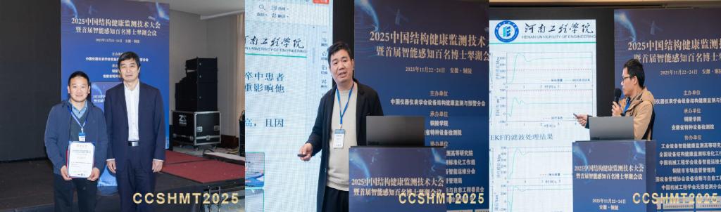2025年11月22日至24日,由中国仪器仪表学会设备结构健康监测与预警分会主办,工业设备智能健康监测高等研究院、安徽省特种设备检测院以及铜陵学院等承办的“2025中国结构健康监测技术大会暨首届智能感知百名博士翠湖会议”在安徽省铜陵市顺利召开。来自全国多所著名高校和科研院所的青年学者齐聚一堂,共同探讨了智能时代,结构健康监测技术发展过程将会面临的机遇与挑战。应大会组委会邀请,机械工程学院青年博士教师倪利伟、张春召和陈培参与了会议论坛,并积极参与会议论坛的专家学者进行了学术交流与研讨。